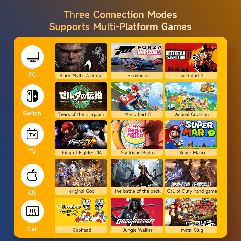 Multi-Platform Compatibility: Seamlessly connect and play on PC, Switch, TV, iOS, and even in-car systems. One controller for all your favorite games!