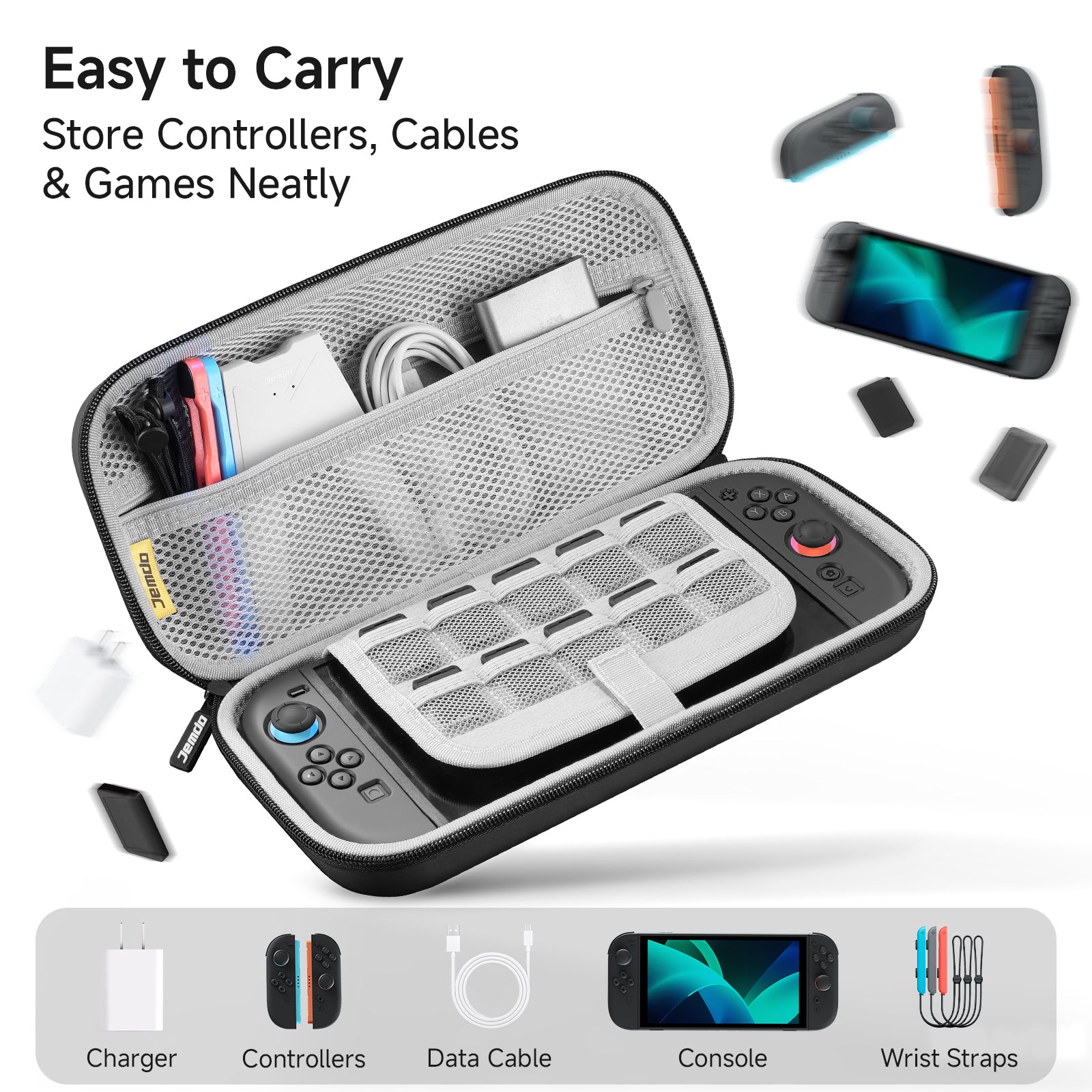 - Tailored for Switch 2 Carrying Case — Boasts a well-organized compartment design with extra-large capacity, perfect for storing your console, Joy-Cons, game cartridges, slim power bank, wrist straps, charger and charging cable, and more.