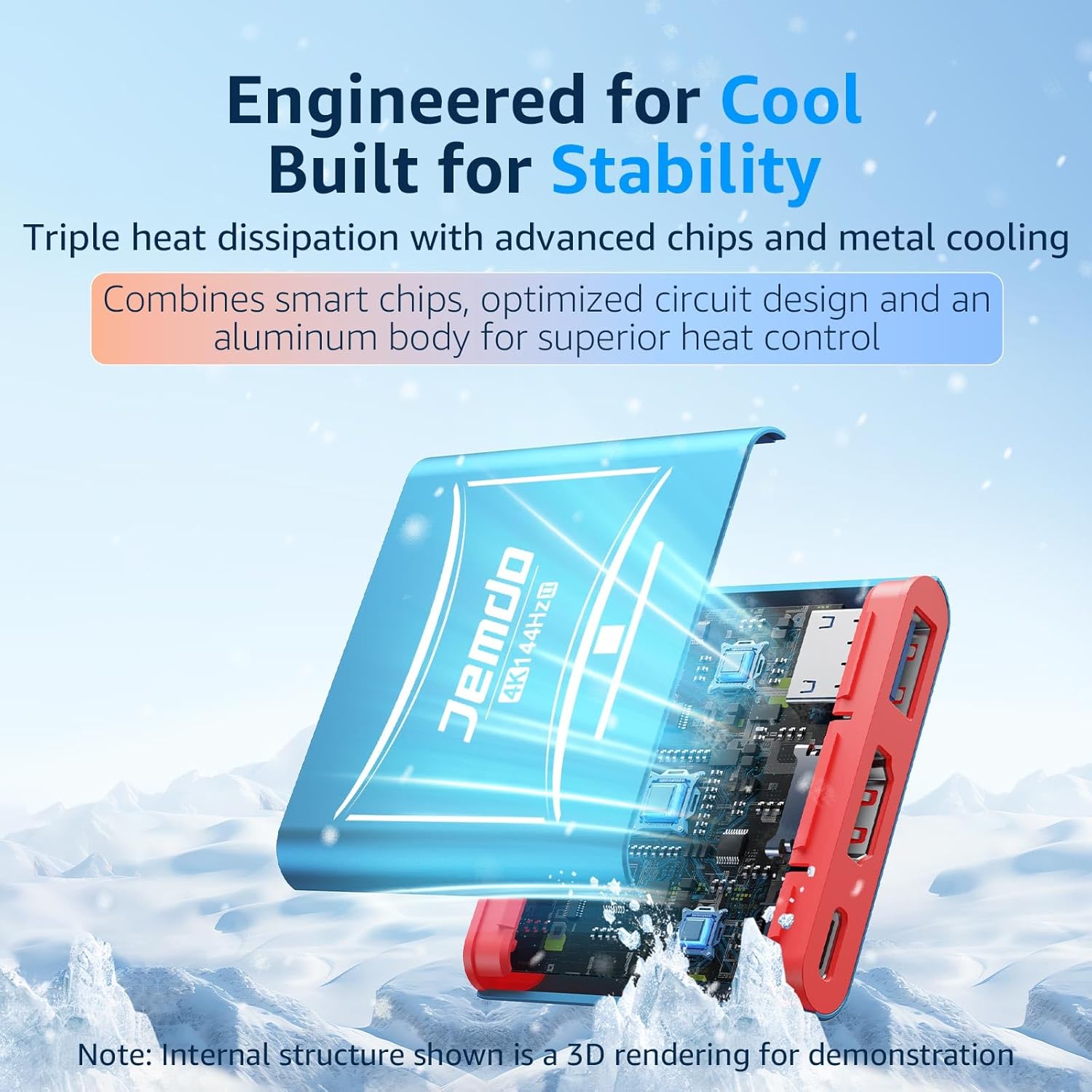JEMDO Switch 2/OLED/NS HDMI Adapter Dock Station(3 Ports),4K144Hz/60kz