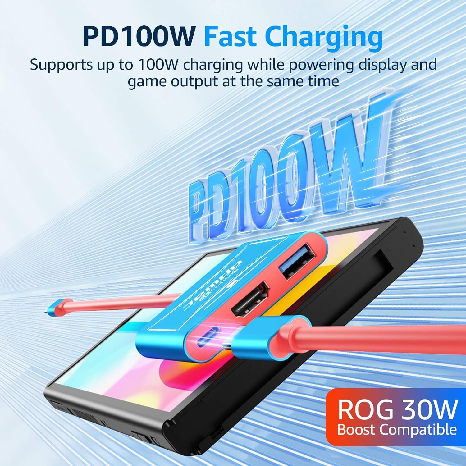 - Three ports in one: a PD100w fast charging port, an HDMI interface, a USB3.0 interface;